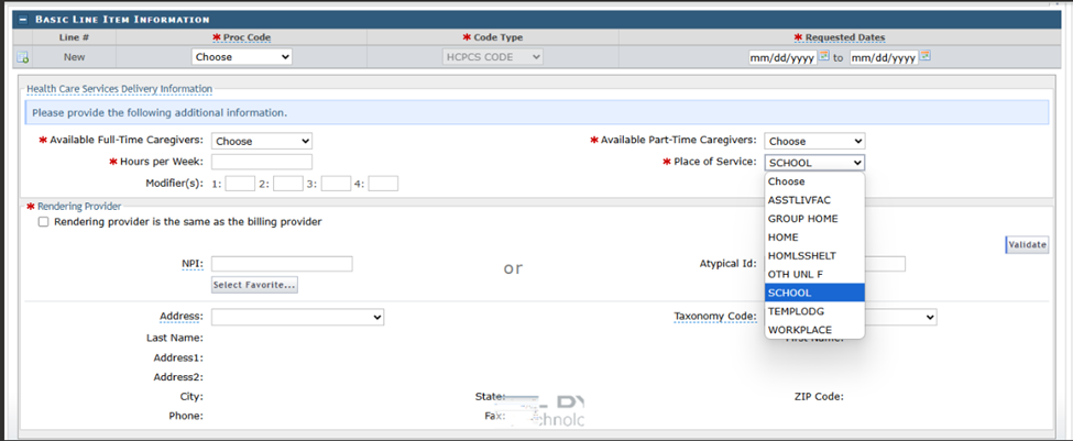 Effective April 14, 2025, PDN providers are to use SCHOOL as the Place of Service for the Missed School Visits only.  The Place of Service value is entered on the Detail Information tab during entry of a new prior approval request via the NCTracks Provider Portal.